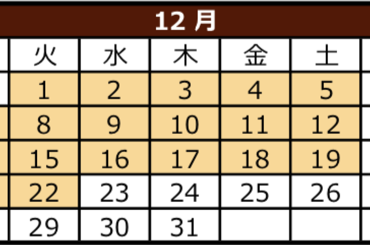 <2020年月のセンター南CYGNETスタジオ12月お休み日>